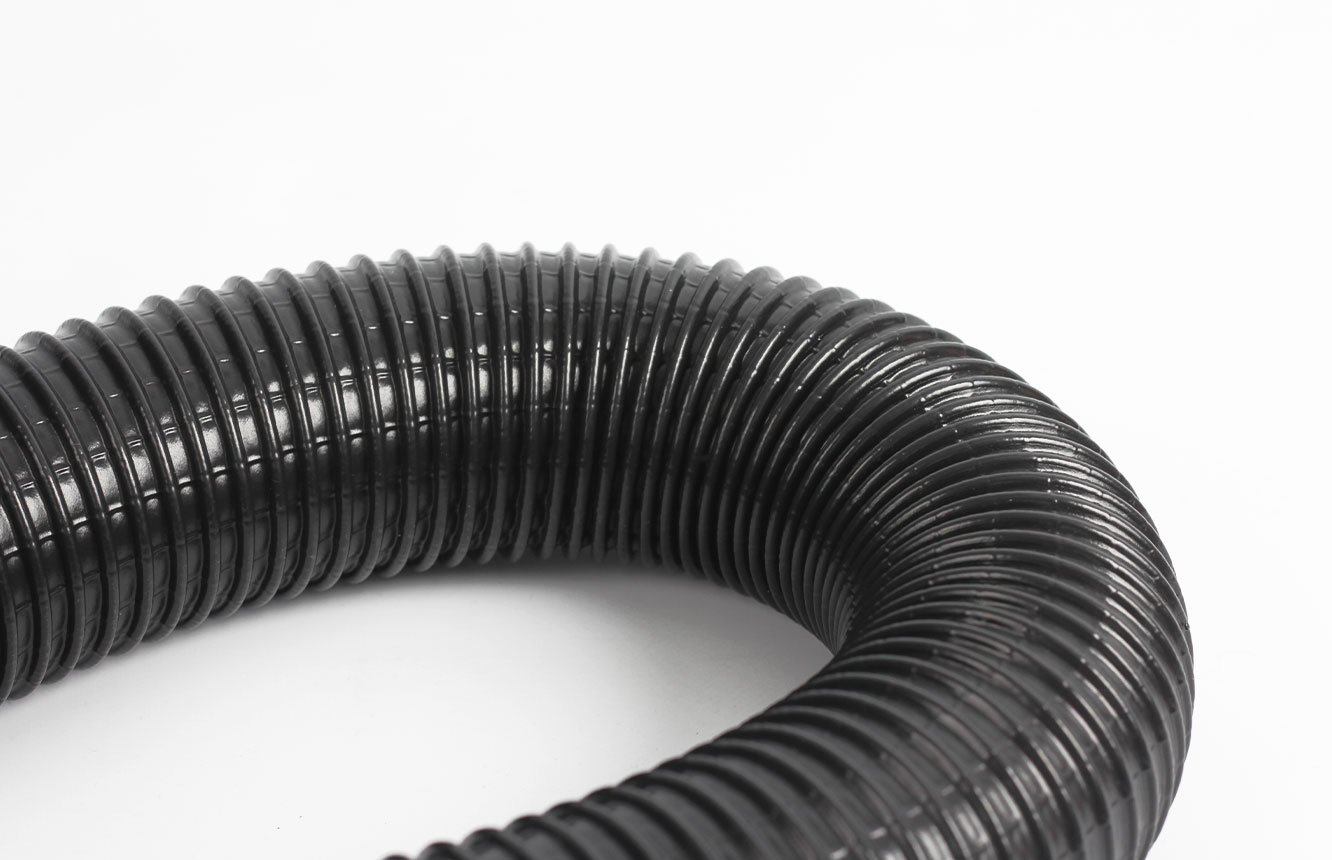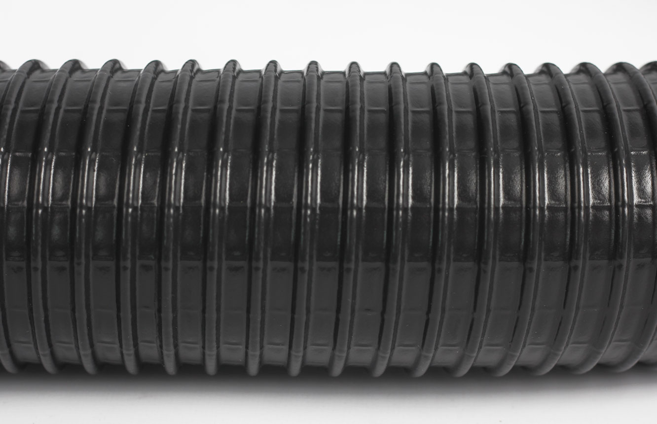 Veelzijdige, zeer flexibele slang met hoge treksterkte gemaakt van twee lagen vlamvertragend PVC met een gecoate veerstalen spiraal en extra axiale en radiale draadversterking.